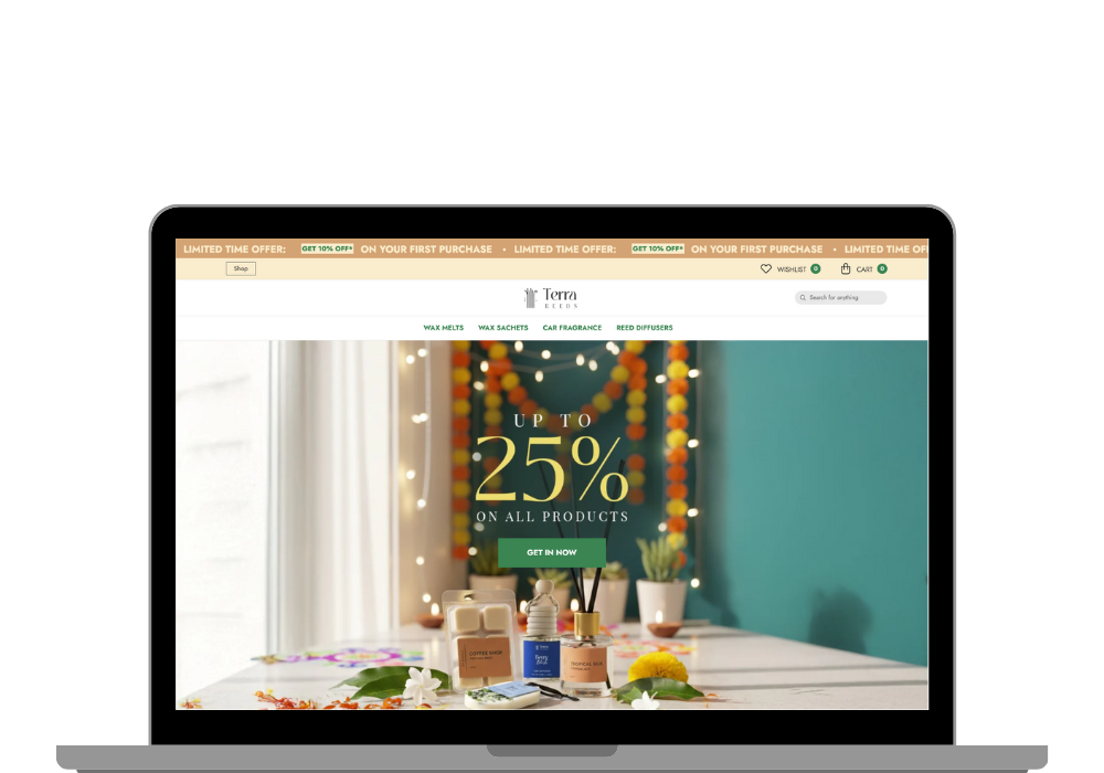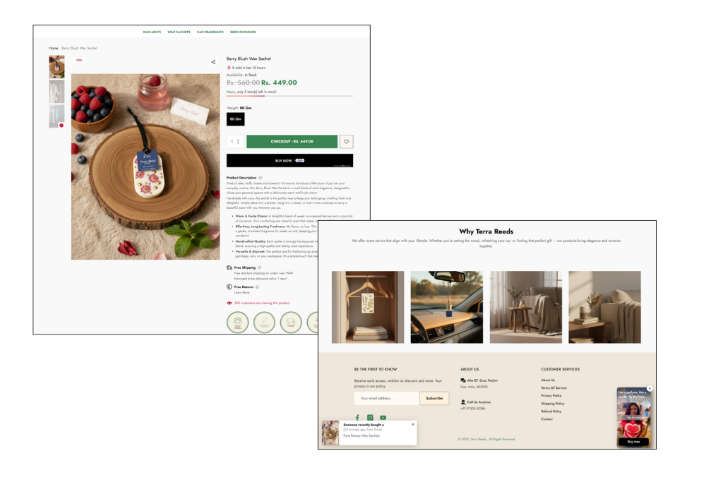 This Goa-based artisan fragrance brand needed an online store that felt as thoughtful and eco-conscious as their handmade soy-wax melts and reed diffusers. We built a beautiful Shopify experience that showcases their sustainable craftsmanship, making the discovery of scents a sensory journey and turning mindful aroma lovers into loyal customers. The result is a digital home as authentic and inviting as the products themselves.